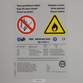 Düperthal Typ 90 CLASSIC standard XL flammable storage cabinet refurbished. Swing doors with automatic fire-locking. 90-minute fire resistance compliant with regulations. 2×4 shelves and 2 sump trays made of powder-coated steel. Outer body and doors in steel sheet; interior in high-quality decorative panels. Design includes central partition and reinforced base. Wing doors with assisted opening. Standard colors: doors RAL 1018, body RAL 7035, base RAL 7015. Optional one-hand door version available. Interior layout: shelves and lower sump tray. External dimensions: 1194×2085×612 mm. Approx. weight: 300 kg.