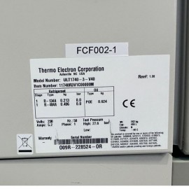 Thermo Revco ULT1740-3-V40 refurbished low temperature freezer. Minimum temperature -40 degrees C. Capacity 481 L, up to 18,300 vials. Includes four shelves. Voltage 220V. Frequency 50Hz. External dimensions 1970 x 935 x 942 cm; 286 kg.