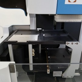 Thermo Scientific Versette 6-channel liquid handling robot refurbished. Channel capacity 96 or 384. Volume range 0.5 to 300 µL depending on head. Compatible with 96 and 384 well plates of various heights and storage tubes in racks from 0.5 to 1.4 mL. Minimum increments 0.1 µL. Accuracy for 96-channel head 0.5-30 µL: ±1.5% or 0.10 µL. Precision for 96-channel head 0.5-30 µL: ±2% or 0.15 µL. RS-232 and USB interface. Operating system Windows XP, Vista, 7, 10. Includes Versette pump unit with three heads. Power connection 100-240V 50/60Hz, consumption not specified. External dimensions 68x68x55 cm, base weight 54.4 kg.