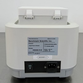 Benchmark Scientific MultiTherm H5000 HE thermoshaker refurbished. Speed 200–1500 rpm (10 rpm increments), 3 mm orbit; temperature range ambient -20 to 100 °C, 0.1 °C resolution and ±1 °C accuracy; heating rate 5.0 °C/min and cooling 2.5 °C/min; digital control with simultaneous display of actual and set values; capacity depending on interchangeable block; Includes D-BLOCK: 2.0 ml x 35; timer from 1 min to 99 h 59 min or continuous; integrated over-temperature protection; power 115/230 V, 50/60 Hz, 500 W; dimensions 210×290×210 mm; weight 8 kg.
