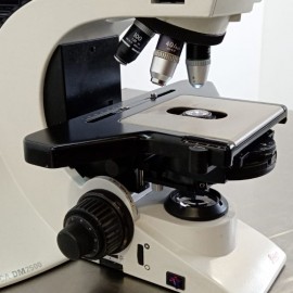 Refurbished binocular microscope Leica DM2500. Nikon eyepieces 10x/26.6. Six-position turret. Four Nikon plan phase objectives E10x/0.25 20x/0.4 40x/0.65 oil 100x/1.25. Phase contrast condenser iris diaphragm filter holder. Mechanical stage for right-handed users. High-performance LED illumination brightfield DIC phase contrast. Constant color temperature at any light intensity. High-performance fluorescence Zero Pixel Shift technology DIC phase contrast polarizing tube. Superior category objectives. User manual included.