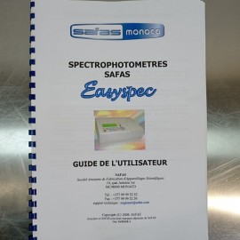 Espectrofotómetro UV/Vis Safas Easyspec reacondicionado. Monocromador tipo Ebert de alta calidad para rango UV-Visible, robusto y fácil de operar. Rango espectral de 320 a 1000 nm, resolución espectral de 2 nm, precisión fotométrica ±0,005 A, y repetibilidad ±0,002 A. Fuente de luz con lámpara de tungsteno-halógeno, vida útil garantizada 10 años. Interfaz USB y software compatible con Windows 7 y 8.Dimensiones externas: 40 x 30 x 15 cm. Peso: 7 kg. Incluye guardapolvo, manuales y CD software.