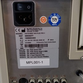 Lavador de microplacas Bio-Rad Bio-Plex Pro II reacondicionado. Estación lavado microplacas 96 pocillos. Ensayos beads magnéticas poliestireno. Vacío filtración. Separación magnética. Porta placas magnético. Porta vacío. Manifold 8 canales. Programas lavado a bordo. HidroControl software. Entrada 100-240 V 1.8 A 47-63 Hz. Dimensiones 44x61x8 cm. Peso 14.4 kg.[1][2][3]