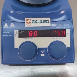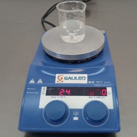 Agitador magnético aquecido IKA RCT. Capacidade de agitação até 20 L. Faixa de velocidade de 50 a 1500 rpm. Indicadores LED de velocidade e temperatura. Faixa de temperatura desde a temperatura ambiente até 310°C. Taxa de aquecimento de 6,5 °C/min. Precisão de temperatura a 100 °C de ±5 °C com placa e ±1 °C Diâmetro da placa 135 mm. Dimensões (L x A x P) 160 x 85 x 270 mm. Peso 2,4kg.