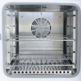 Estufa de secagem Biobase BJPX-HGZ88 Nova.Capacidade 88L.Intervalo de temperatura TA+10 a 300 graus.Resolução de temperatura 0,1 graus.Flutuação +/-1 grau.Uniformidade <=temp máx +/-2,5%.Convecção forçada.Intervalo de tempo 1-9999 min/h ou contínuo.Ecrã LCD.Prateleiras 3 peças.Depósito em aço inoxidável semicircular.Alarme de sobretemperatura.Janela de visualização.Isolamento térmico.Alimentação AC100-245V 50/60Hz.Consumo 1000W.Dimensões exteriores 730x640x660 mm.Dimensões interiores 500x360x490 mm.Peso líquido 50,5 kg.