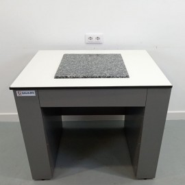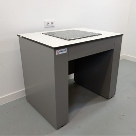 Mesa antivibração delab 961001 recondicionada. Superfície de trabalho 1000x750 mm em resina fenólica. Dois amortecedores independentes. Amortecedores pneumáticos. Isolamento de vibração 95 % na faixa de 2–100 Hz. Pressão de trabalho 4–6 bar. Estrutura em aço. Placa de trabalho em granito 400x400 mm. Dimensões 1000x750x900 mm. Peso 150 kg.