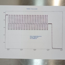 Termociclador Applied Biosystems 9800 Fast recondicionado. Faixa de temperatura 4 graus a 105 graus. Capacidade 96 poços. Precisão PCR +/-0,25 graus. Velocidade de rampa 5 graus/seg. Ecrã LCD. Formato de bloco 96 poços. Capacidade de gradiente. Compatível com tubos PCR 0,2 mL, tiras de 8 poços, placas de 96 poços. Acessórios cabo de alimentação, manual do utilizador. Voltagem 100-240V. Frequência 50/60Hz. Potência 600W. Dimensões 24 x 46 x 23 cm. Peso 12 kg.